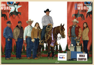 The showing fee for the AQHA World Show and Rope Horse Futurities will differ from the show fee for the regular year shows. This fee will be determined by August. At the AQHA World Show and Futurities, prize money will be equally divided between the owner and myself. I cannot guarantee that I personally will be able to show a horse at the World Show. If I do not show your horse I will provide a qualified professional to do so.