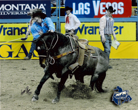 Registered as “Twister’s Enola Gay” Roanie was born in 1992. She is by Smooth Talkin Man (Jet Smooth/The Ole Man) out of a daughter of Toby Gay Bar (Gay Bar King) out of a Daughter of Dun Berry. She has won or placed at every major rodeo there is, and Tuf Cooper rode her to win the 2012 PRCA World Championship. She is a 4x AQHA World Champion, 4X Quarter Horse Congress Champion, and has won every major horse show in the United States, as well as the National Rope Horse futurity Sweepstakes several times.